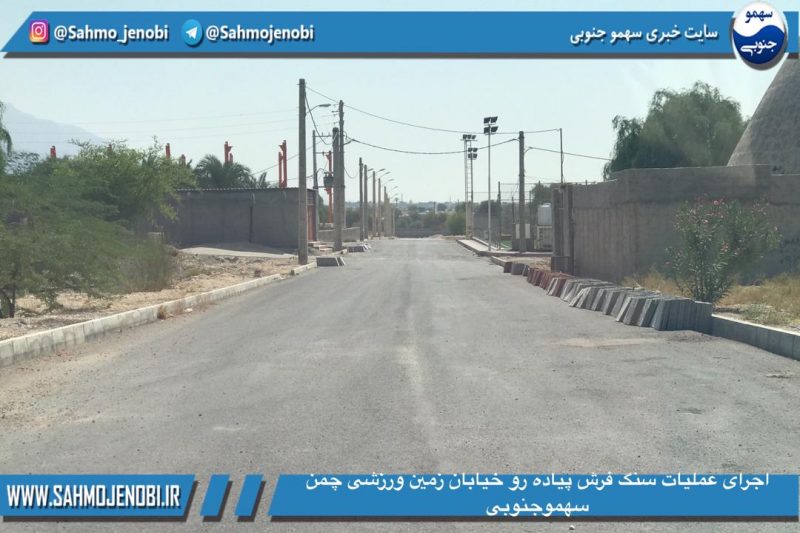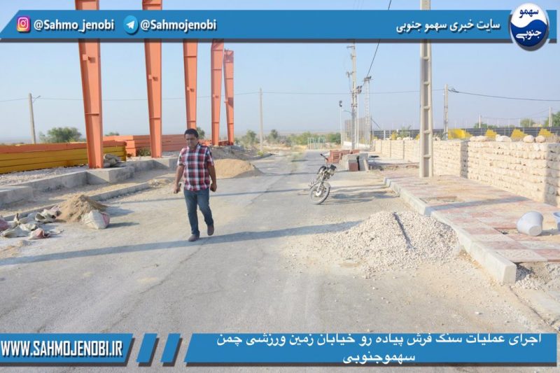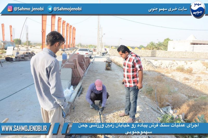 اجراى عمليات سنگ فرش پياده رو خيابان زمين ورزشى چمن روستاى سهموجنوبى توسط دهيارى اين روستا در حال انجام است