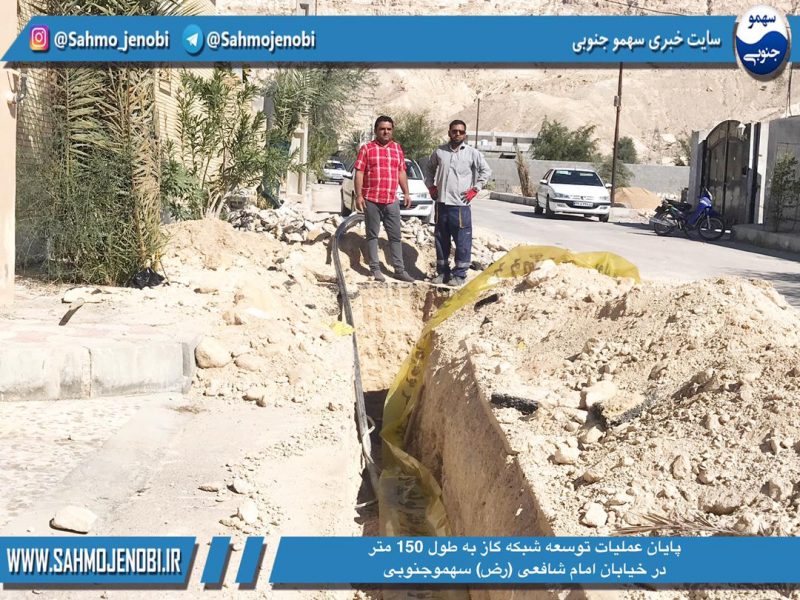 عمليات توسعه شبكه گاز به طول ۱۵۰ متر توسط دهيارى سهموجنوبى و باهمكارى اداره گاز شهرستان عسلويه به پايان رسيد