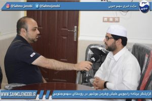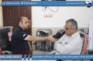صبح امروز گزارشگر برنامه راديويي خيش وخرمن استان بوشهر با بوهندي كمالي رييس شوراي سهموجنوبي ، شيخ عيسى ابراهيم پور ، دامدار حسين حسيني و بانوان روستاي سهموجنوبي مصاحبه كرد اين مصاحبه در راديو خيش وخرمن استان بوشهر پخش خواهد شد زمان پخش در اين سايت متعاقبا اعلام مي گردد