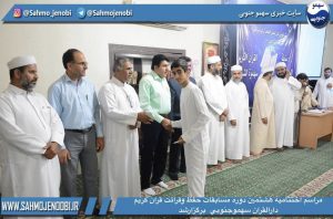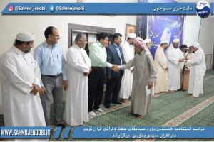 در این مراسم از نفرات برتر رشته های قرائت و حفظ، نفرات برتر تفسير كانون على بن ابي طالب رضي الله عنه ، نفرات مسابقه كتاب پناه گاه مسلمان مجتمع امورقراني سهموجنوبي در دو بخش خواهران و برادران تجلیل شد.